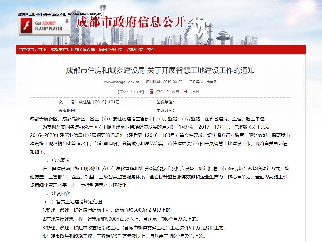 成都市住房和城鄉(xiāng)建設局發(fā)布關于智慧工地建...